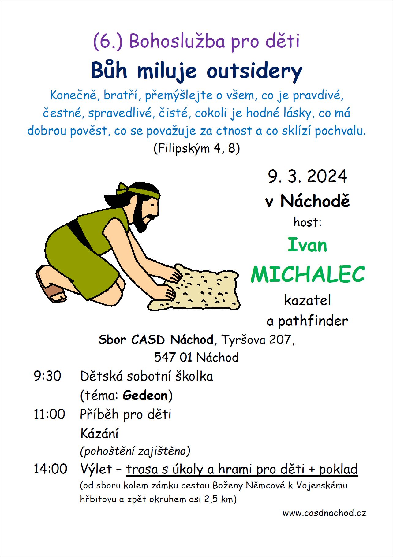 7. bohoslužba pro děti na téma "Bůh miluje outsidery" (09. 03. 2024)